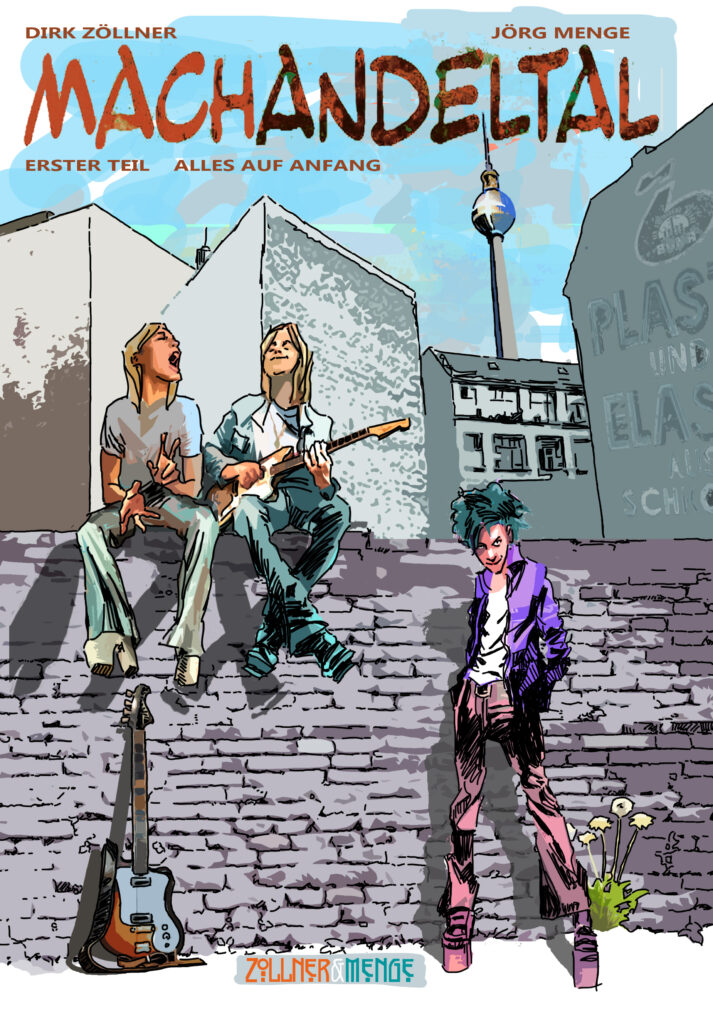 Der Musiker & Autor Dirk Zöllner und der Maler & Grafiker Jörg Menge präsentieren mit „Alles auf Anfang“ die Pilotfolge der Graphic Novel „MACHANDELTAL“. In der Graphic Novel, wird die jüngere deutschen Geschichte betrachtet – unterhaltsam und ohne tendenzielle politische Einfärbung. Die markanten Hauptfiguren betrachten gesellschaftlich relevante Situationen gleichzeitig aus ihren individuellen Perspektiven. Beginnend in den 1970‘er Jahren in Ostberlin, mit der Gründung der Band SB62. Entstanden ist ein neues Projekt mit einer crossmedialen Verknüpfung von Text, Bild und Musik.